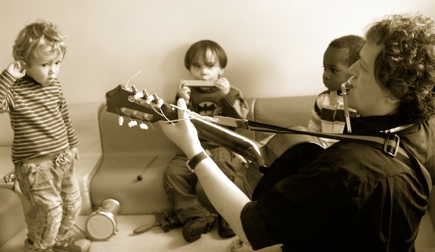 Il n’est en aucun cas présent à notre esprit (ni souhaité) de stimuler à outrance, d’éveiller à tout prix et de charger l’enfant dans son quotidien et son développement de surstimulation ou d’activisme immodéré. Il est plus question de plaisir, d’exploration, de jeu et de convivialité : un échange de qualité pour tous, petits et grands, autour de la musique.